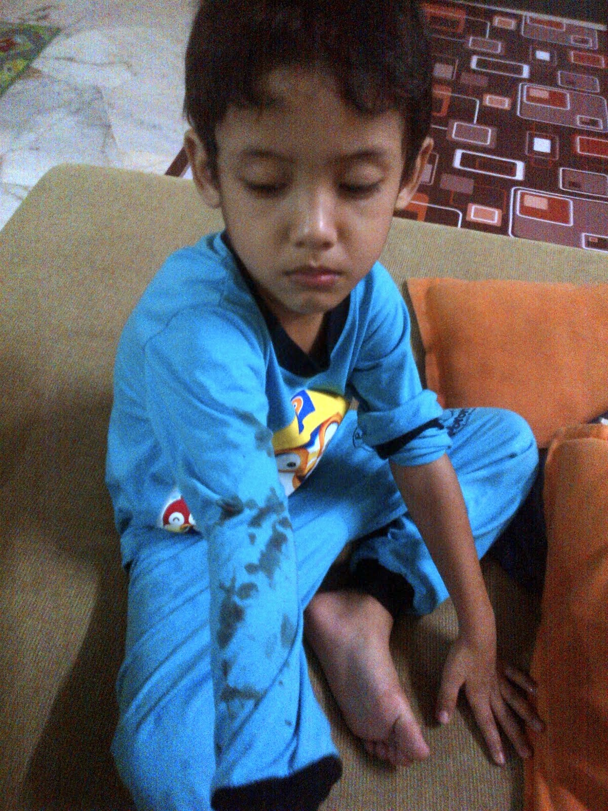 Lagipun anak anak aii ni pun stok lasak tak hengat gak, dah biasa dah tengok lebam sana, calar sini, berdarah skit skit ni. Sesama diorang sendiri pun dah pernah dah tertumbuk hidung sampai berdarah. As I said, anak jantan kannn 😉