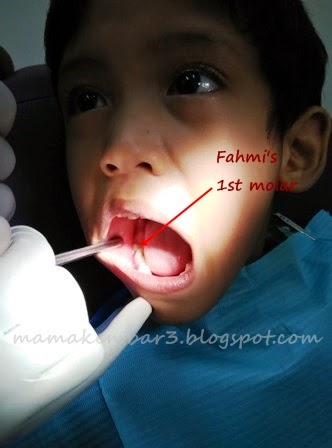 Sejak Jumaat malam, si Fahmi asyik dok mengadu sakit gigi. Ingatkan sebab gigi berlubang lagi. Mula mula Mama just suruh dia gosok gigi & berkumur dengan air garam. Tapi bila dia terus juga mengadu sakit, kitorang pun bawa jumpa doktor gigi semalam. Nasib baik klinik gigi tu tak perlu buat appoinment & buka pula sampai ke petang. Sebab biasanya klinik gigi kan kena buat appointment dulu kan. Rezeki 🙂